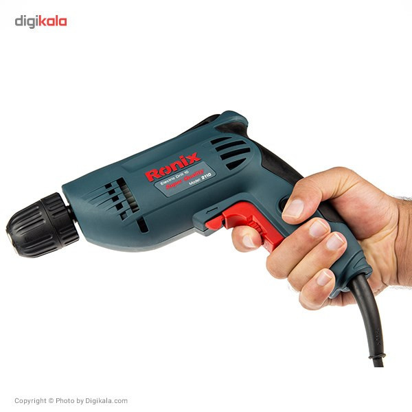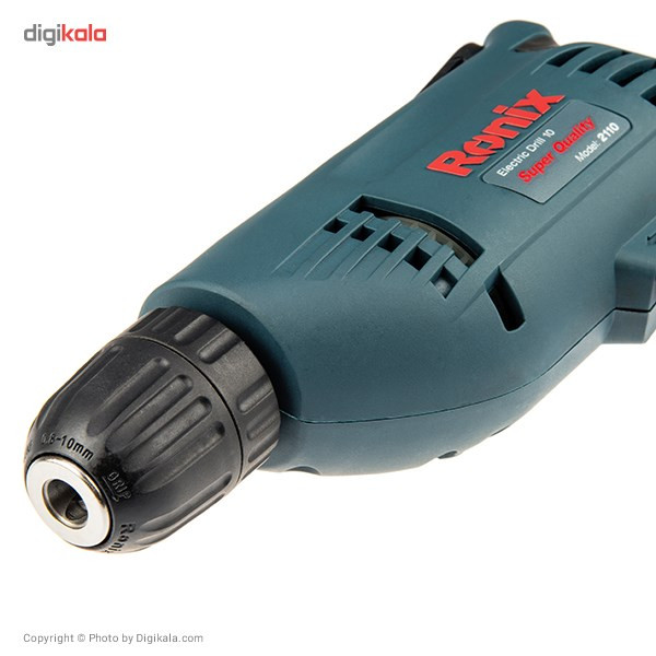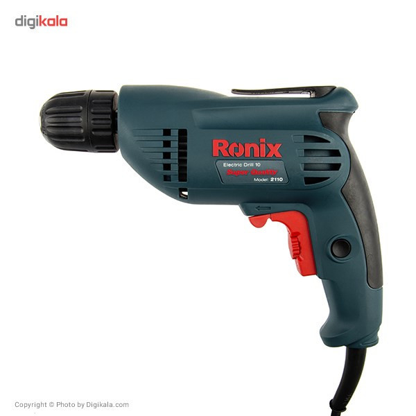 دریل برقی مدل 2110 یک دستگاه ساده، کوچک و مناسب برای استفاده در منزل یا محل کار است. این محصول با برند «رونیکس» (Ronix) تولید و به بازار عرضه میشود. 2110 به یک موتور تک سرعتی مجهز شده و قابلیت گردش به طرفین را دارد. برای این محصول یک سهنظام خودکار در نظر گرفتهاند و برای تعویض مته نیاز به استفاده از هیچ نوع ابزاری ندارید. این مدل را شرکت ایرانی رونیکس تولید میکند. این شرکت مدتی است که به ساخت و عرضهی ابزارهای مختلف اشتغال دارد. موتور در نظر گرفتهشده برای مدل 2110، با قدرت 400 وات عمل میکند. سرعت گردش این دریل تا 2900 دوربردقیقه میرسد. این سرعت گردش با استفاده از پیچ قرارگرفته روی شستی تنظیم میشود. علاوه بر این جهت گردش دریل هم بهصورت راستگرد و هم بهصورت چپگرد، امکانپذیر است. از این دستگاه برای سوراخکاری اجسام و قطعات مختلف چوبی یا فلزی استفاده میکنند. حداکثر قطر سوراخکاری این دستگاه در چوب و فلز به ترتیب 25 و 10 میلیمتر است. ویژگی این دستگاه استفاده از سهنظام خودکار در تولید این محصول است؛ بهعبارتدیگر برای تعویض مته، نیازی به استفاده از آچار ندارید. همچنین یک گیره پلاستیکی روی دستگاه قرارگرفته که از آن برای اتصال دستگاه به کمربند استفاده میکنند. این دستگاه 1.5 کیلوگرم وزن دارد. با توجه به افزایش اشتیاق افراد جامعه به انجام خودکفای کارهای فنی منزل و محل کار، تهیهی ابزارهای موردنیاز برای این موضوع هم به تنوع بسیار زیادی انجام میشود. ازجملهی ابزارهایی که امروزه در منازل و مغازههای مختلف میبینیم، دریل برقی یا شارژی است. این دستگاه برای سوراخکاری اجسام مختلف به کار میرود. دریل برقی مدل 2110 رونیکس یک دریل برقی ساده با قدرت 400 وات است که سرعت آن حداکثر تا 2900 دوربردقیقه تنظیم میشود.