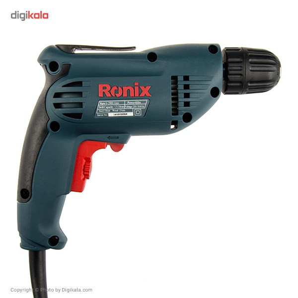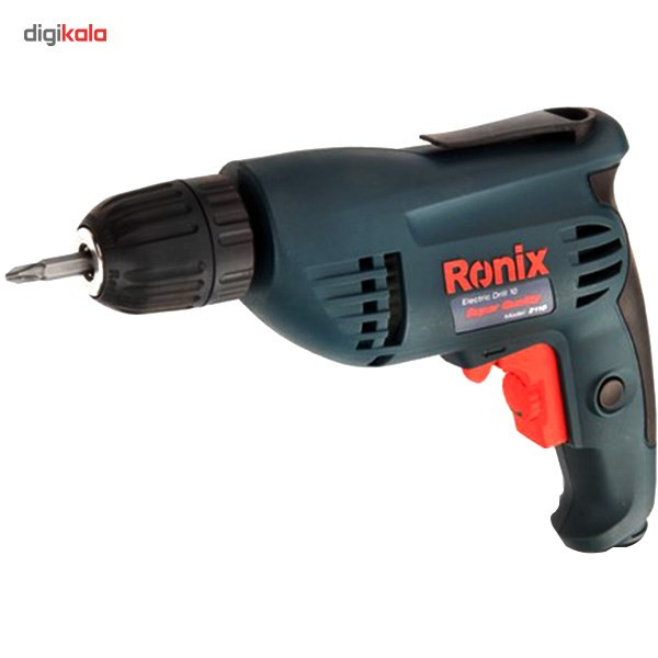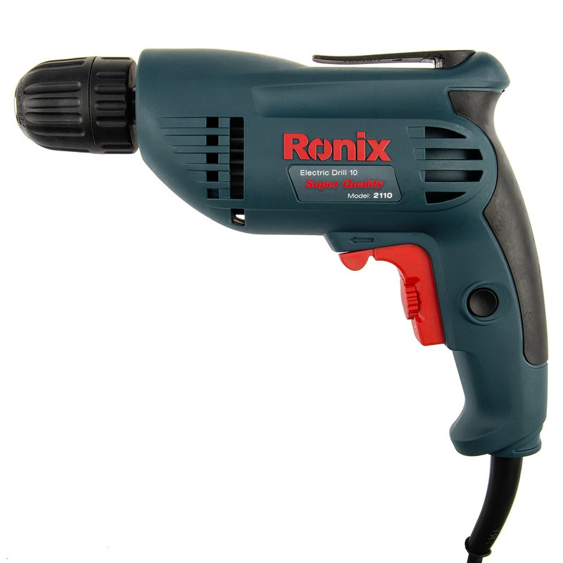 دریل برقی مدل 2110 یک دستگاه ساده، کوچک و مناسب برای استفاده در منزل یا محل کار است. این محصول با برند «رونیکس» (Ronix) تولید و به بازار عرضه میشود. 2110 به یک موتور تک سرعتی مجهز شده و قابلیت گردش به طرفین را دارد. برای این محصول یک سهنظام خودکار در نظر گرفتهاند و برای تعویض مته نیاز به استفاده از هیچ نوع ابزاری ندارید. این مدل را شرکت ایرانی رونیکس تولید میکند. این شرکت مدتی است که به ساخت و عرضهی ابزارهای مختلف اشتغال دارد. موتور در نظر گرفتهشده برای مدل 2110، با قدرت 400 وات عمل میکند. سرعت گردش این دریل تا 2900 دوربردقیقه میرسد. این سرعت گردش با استفاده از پیچ قرارگرفته روی شستی تنظیم میشود. علاوه بر این جهت گردش دریل هم بهصورت راستگرد و هم بهصورت چپگرد، امکانپذیر است. از این دستگاه برای سوراخکاری اجسام و قطعات مختلف چوبی یا فلزی استفاده میکنند. حداکثر قطر سوراخکاری این دستگاه در چوب و فلز به ترتیب 25 و 10 میلیمتر است. ویژگی این دستگاه استفاده از سهنظام خودکار در تولید این محصول است؛ بهعبارتدیگر برای تعویض مته، نیازی به استفاده از آچار ندارید. همچنین یک گیره پلاستیکی روی دستگاه قرارگرفته که از آن برای اتصال دستگاه به کمربند استفاده میکنند. این دستگاه 1.5 کیلوگرم وزن دارد. با توجه به افزایش اشتیاق افراد جامعه به انجام خودکفای کارهای فنی منزل و محل کار، تهیهی ابزارهای موردنیاز برای این موضوع هم به تنوع بسیار زیادی انجام میشود. ازجملهی ابزارهایی که امروزه در منازل و مغازههای مختلف میبینیم، دریل برقی یا شارژی است. این دستگاه برای سوراخکاری اجسام مختلف به کار میرود. دریل برقی مدل 2110 رونیکس یک دریل برقی ساده با قدرت 400 وات است که سرعت آن حداکثر تا 2900 دوربردقیقه تنظیم میشود.
