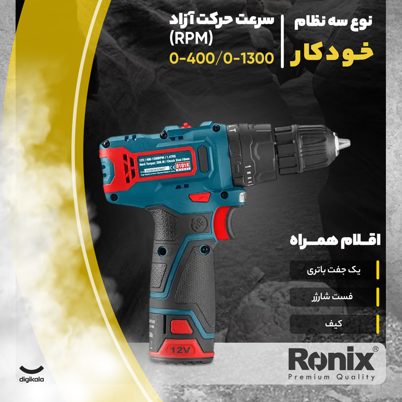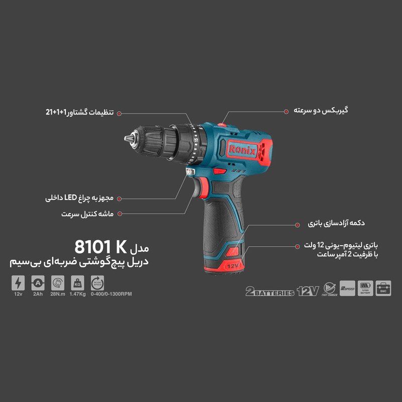 دریل پیچ گوشتی چکشی شارژی رونیکس مدل 8101K