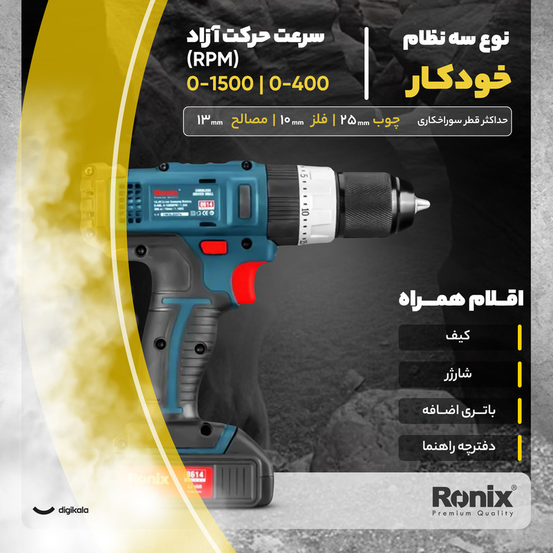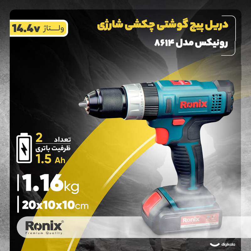 دریل پیچ گوشتی شارژی چکشی رونیکس مدل 8614