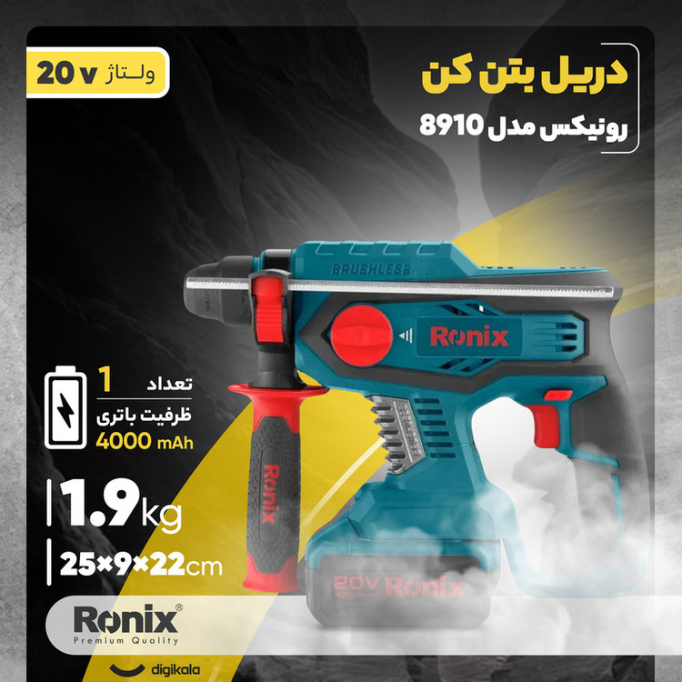دریل بتن کن شارژی رونیکس مدل 8910، با ترکیب قدرت یک موتور براشلس و آزادی عمل باتری، یک ابزار حرفهای برای کاربریهای صنعتی و کارگاهی است. این دریل از برند رونیکس، نیروی خود را از یک باتری ۲۰ ولتی سری براشلس تأمین میکند. موتور براشلس آن، علاوه بر افزایش طول عمر دستگاه، قدرت و بازدهی بالاتری را برای سوراخکاری و تخریب در سختترین سطوح فراهم میآورد. این دستگاه قابلیت سوراخکاری تا قطر ۲۲ میلیمتر در مصالح، ۲۸ میلیمتر در چوب و ۱۳ میلیمتر در فلز را دارد.