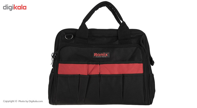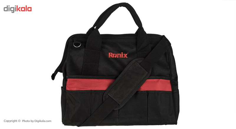 اگر قصد تهیهی مجموعه ابزاری ساده و کارآمد دارید محصول فوق پاسخگوی نیازهای شما خواهد بود. این مجموعه 19 عددی از ضروریترین ابزارهای کار برخوردار است. شرکت «رونیکس» (Ronix) برای این مجموعه 3 پیچ گوشتی دوسو و 4 پیچ گوشتی چهارسو با سری آهنربایی و قابلیت کوبش پذیری درنظر گرفته است تا بتوانید بسیاری از پیچهای دوسو و چهارسو را باز و بسته کنید. برای پیچهای دیگر نیز 8 پیچ گوشتی ستارهای و 8 آچار آلن طراحی شده است. فازمتر این مجموعه طولی 18 سانتیمتری دارد و دامنه ولتاژ آن 500-100 ولت است. انبرهای این مجموعه نیز شامل سیمچین، انبردست و انبر قفلی میشوند که به ترتیب طولی برابر 16.5، 19.5 و 23 سانتیمتر دارند. از دیگر ابزارهای کاربردی که برای هر کیف ابزاری ضروری است کاتر، آچار فرانسه، متر و چکش را میتوان نام برد. شرکت رونیکس نیز به این موضوع توجه داشته است. آچار فرانسه این مجموعه 10 اینچی بوده و چکش و کاتر آن بهترتیب طولی برابر 28 و 17 سانتیمتر دارند. طول نوار متر فلزی آن نیز 5 متر بوده و از قفل، استپر و سری آهنربایی برخوردار است. برای روغنکاری قطعات نیز روغندانی فلزی با ظرفیت 200 میلیلیتر عرضه شده است. این مجموعه درون کیف ابزاری برزنتی با 35 محفظه قرار دارد که از بند و فریم فلزی دور دهانه سود میبرد.