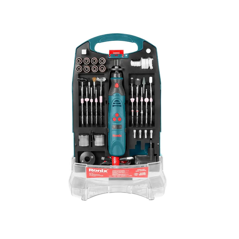 این فرز مینیاتوری مجهز به یک موتور DC 3.6 ولت است که سرعتی بالغ بر 18000 دور در دقیقه تولید کرده و به ابزارگیر 3.2 میلی متری خود منتقل می کند. سرعتی که در 6 حالت مختلف، در بازه 5000 تا 18000 دور در دقیقه و متناسب با سطح کار شما قابل تنظیم است.