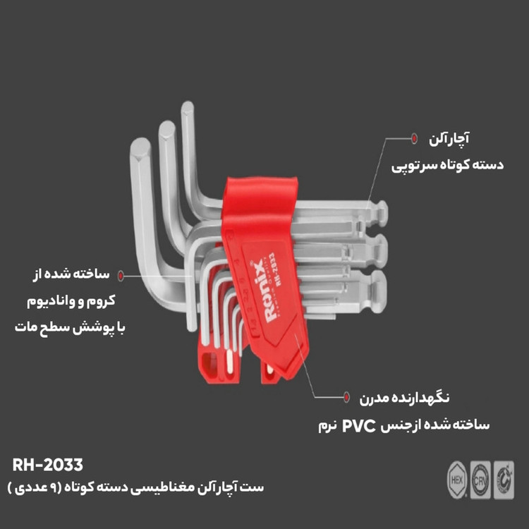 شماره آچار: 1.5 , 10 , 2 , 2.5 , 3 , 4 , 5 , 6 , 8