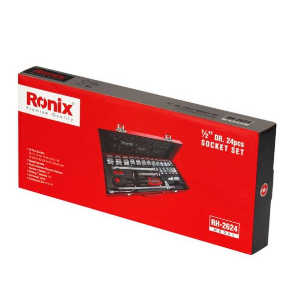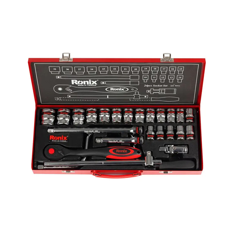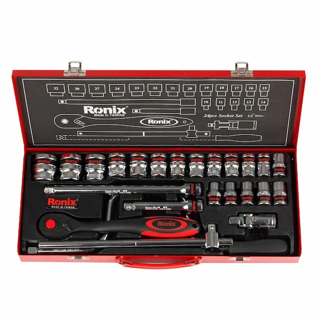 دارای بکس 16 میلی متری دارای 2 دسته کمکی 10 اینچی جغجه ی 1/2 اینچی 72 دندانه با دسته ارگونومیک دسته هندلی 1/2 اینچ دارای یک آچار لقلقه 1/2 اینچ