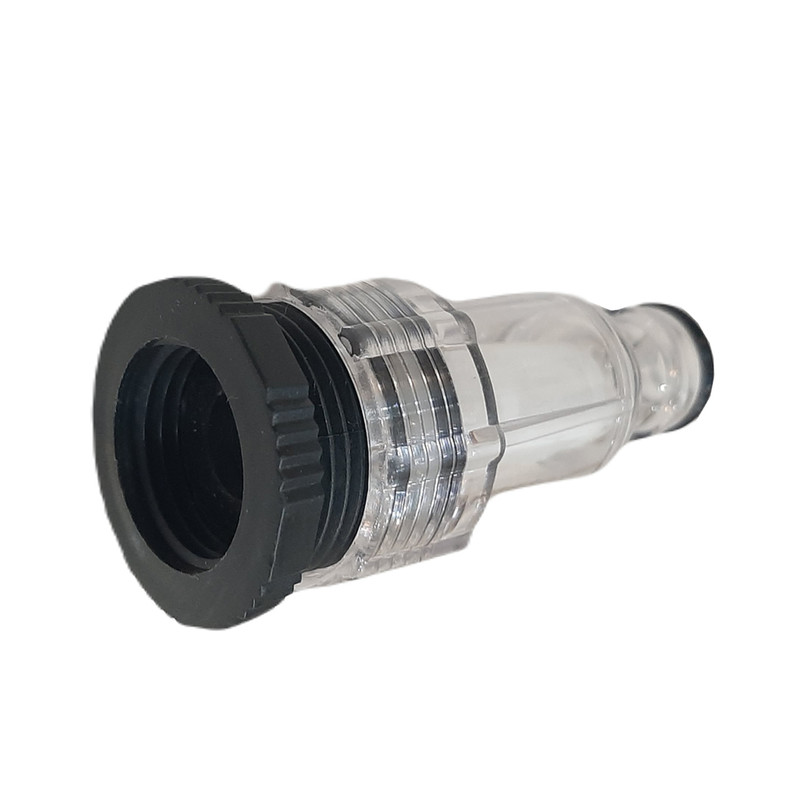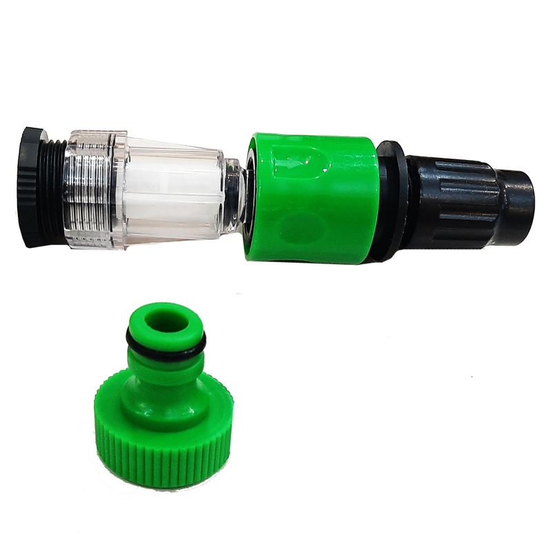 این محصول یک عدد فیلتر شیشه ای ورودی کارواش با سایز 2/5 سانت یا 3/4 اینچ می باشد که به همراه کوپلینک فشاری مخصوص سر شیلنگی و تبدیل 2/5سانت و سر شیلنگی نری عرضه شده است.ابتدا فیلتر را به کارواش متصل میکنید و سپس این کوپلینگ به سر شیلنگ متصل میشود و برای هر بار استفاده جهت اتصال شیلنگ به کارواش به راحتی کوپلینگ را به فیلتر نصب شده بر روی کارواش فشار میدهید.برای باز کردن کوپیلنگ از فیلتر می بایست سر کوپلینگ را به بیرون هل دهید تا ضامن کوپلینگ ازاد شود و کوپلینگ شیلنگ از فیلتر کارواش جدا گردد.این کار باعث افزایش طول عمر فیلتر جهت جلوگیری از شکستن آن میگردد.